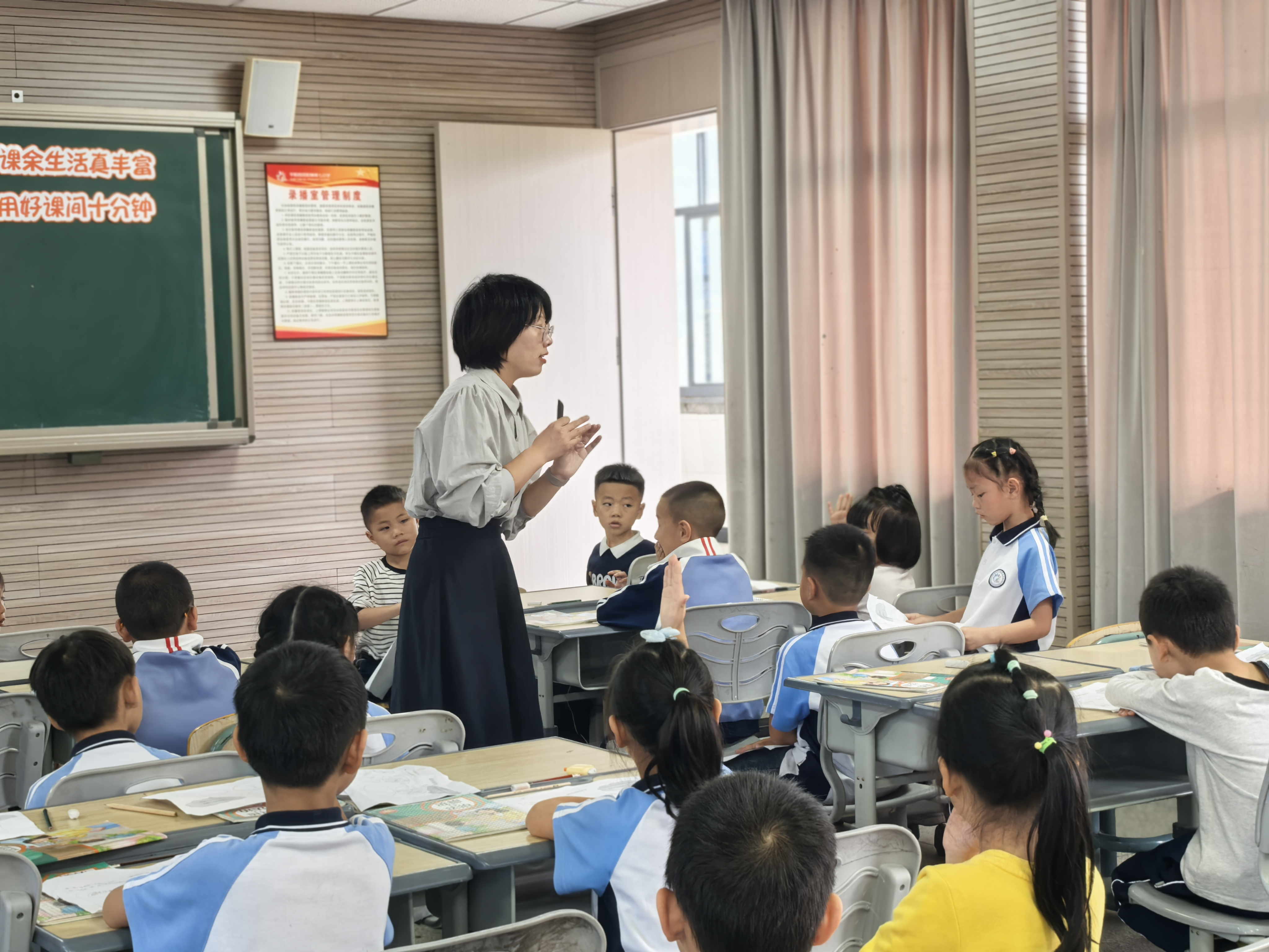 首先,是郑静老师带领一(2)班的小朋友共同探讨一年级上册《课余生活真丰富》 这一课。第一板块,郑老师先借助孩子们熟悉的课程表,指导孩子们认识课间十分钟,以及与课余生活的区别。接着,郑老师从孩子们的课前导学单入手,引导孩子们讨论怎样合理安排好课间十分钟。当孩子们渐渐认识到课间十分钟要坚持重要的事先做的原则后,郑老师又指导孩子们修正自己的课间规划单,真正将教学落到了指导孩子们真实生活的实处。第二板块,郑老师通过组织孩子们辨一辨,推荐游戏,学做游戏等活动,引导孩子更有意思,更安全地过好课间十分钟。课堂上,一(2)班小朋友天真可爱的样子以及良好的学习习惯得到大家一致好评。