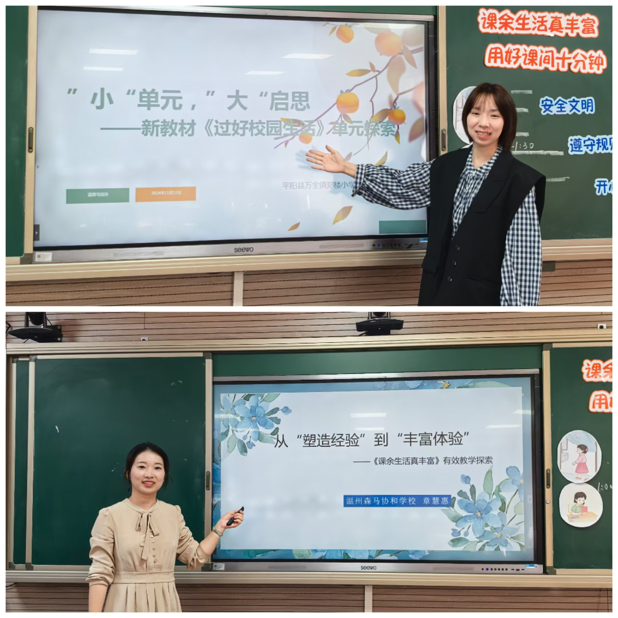 为促进教育区域平衡,实现教育共富,发挥名优骨干教师辐射作用,立足探索小学道德与法治新课标理念指引下的课堂教学实践,促进工作站学员成长,2024年11月12日,温州市姜丹“名师送教”工作室第五次活动如期在平阳县昆阳镇第七小学举行。