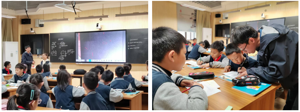 第二节由陈李勇老师和四年级孩子带来的《算式的展开》,数形结合,借助长方形面积图理解掌握七年级下册的简单的多项式乘法问题。孩子们在不断猜想与验证中感知图形与算式的关系,不同面积图与展开式的共性,提升思维。