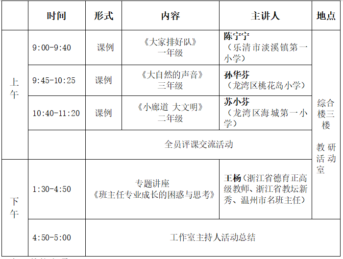 温州市王杨名班主任“名师送教”工作室第17次活动的