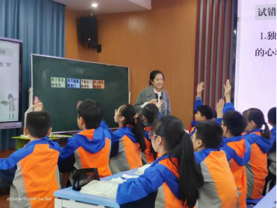 第二节课由吴娴老师引领六(1)班学生学习《盼》。课堂伊始,吴老师借助思维导图引导学生把握文章脉络,了解课文围绕中心意思“盼”写了“我”的哪些表现。接着带领学生通过自主合作等方式研读第二部分“盼出门”,体会课文是如围绕“盼”这一中心意思写的。通过仔细品读,感受课文是如何把心理活动写具体、写生动的,并在最后的迁移运用中,练写成长过程中“盼”的经历。整堂课以生为本,为学生搭建了充分的交流展示平台,教学效果良好。