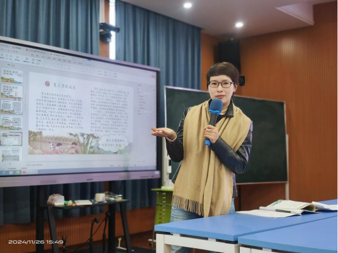 章老师还以作家的视角,从高远深邃的教育视角,为我们解读了高段习作单元整组教学的精髓。她的话语如同秋日的清泉,滋润着每一位教师的心田,让我们对习作教学、阅读教学有了更明晰的方向。