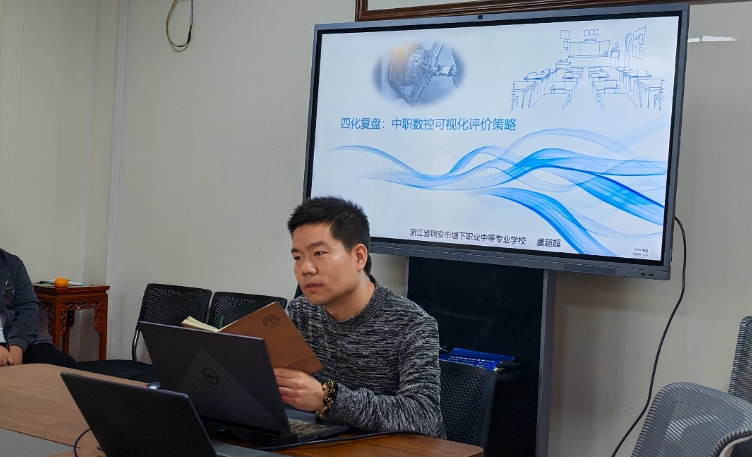 瑞安市塘下职业中等专业学校的虞超超老师作了《四化复盘:中职数控可视化教学评价策略》的分享。虞老师从概念界定、改进契机、现有问题、总体设计、实施成效五个方面娓娓道来,创新性设计了主体多元化、过程可视化、落实全程化、问题聚焦化四化复盘。虞老师的可视化评价策略给教学评价提供借鉴。