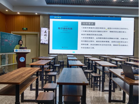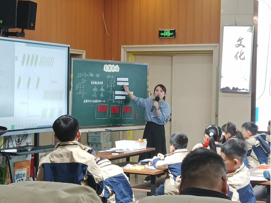 随后,温州市仰义第一小学的陈淑微老师带来了《除数是一位数的除法》的观点报告。陈老师从新课标解读入手,分析教学现状,通过对教材的纵向对比分析,确定本课时的教学起点,并以此确定教学目标及教学路径,对这一单元教学的有效实施起到了指导性意义。