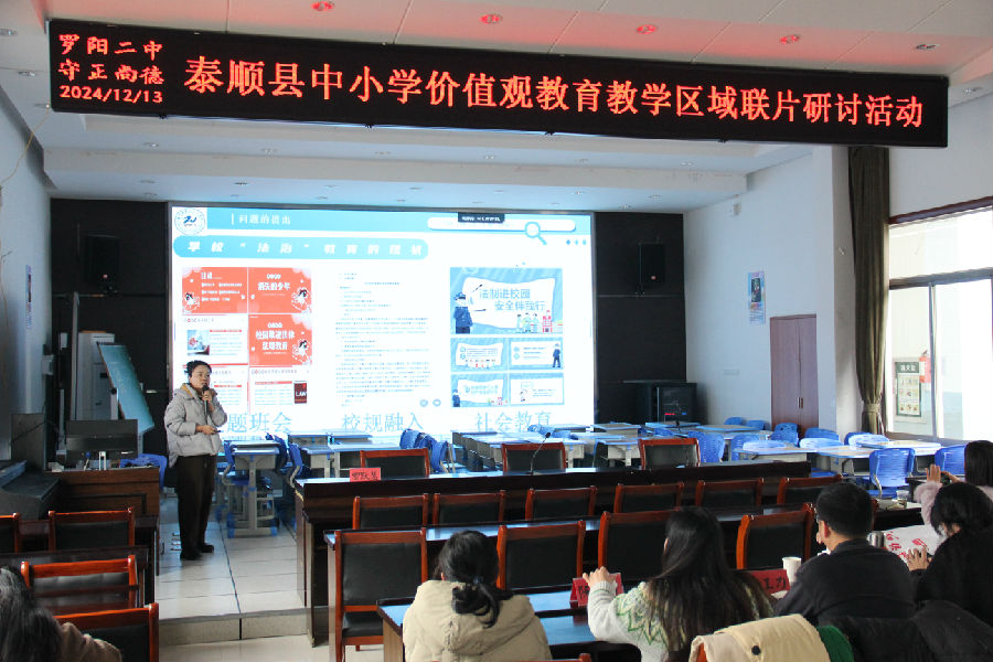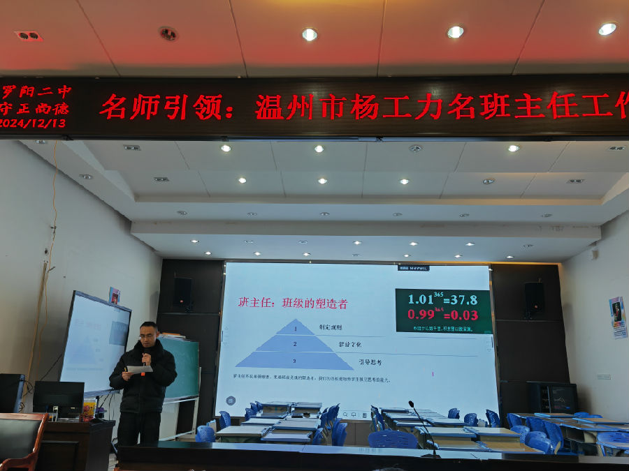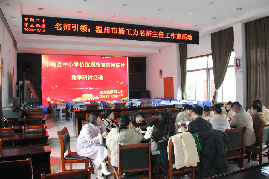 2024年12月13日,泰顺县罗阳二中迎来了一场关于价值观教育的思想盛宴,一场以“学科融合价值观,泰顺教育新探索”为主题的温州市杨工力“名师送教”工作室活动,在泰顺县罗阳二中的四楼报告厅精彩上演,这不仅是对温州市区域教育改革与发展重点课题《中小学价值观教育的温州实践》的深入实践,更是泰顺县教育迈向均衡共享、教研共富的坚实步伐。