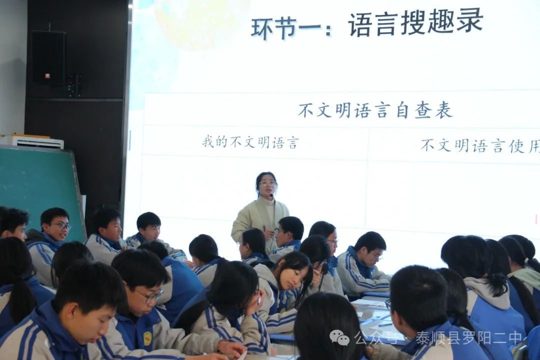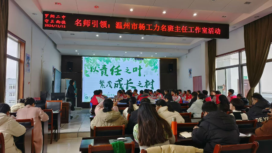课堂展示环节,更是亮点纷呈。温州市第二十一中学的优秀班主任王妍诺老师,给七年级(2)班带来了一节班会课《以责任之叶,繁茂成长之树》。王老师通过生动的案例和AI互动,引导学生深刻理解责任的意义,激发了他们的责任感和使命感。而罗阳二中的陶思思老师,则以其九年级(5)班的班会课《“语”润心田 文明花开》展示了科学老师以积极心理学视角如何在日常教学中融入文明规范用语,让学生在知识的海洋中,也能感受到文明的滋养。