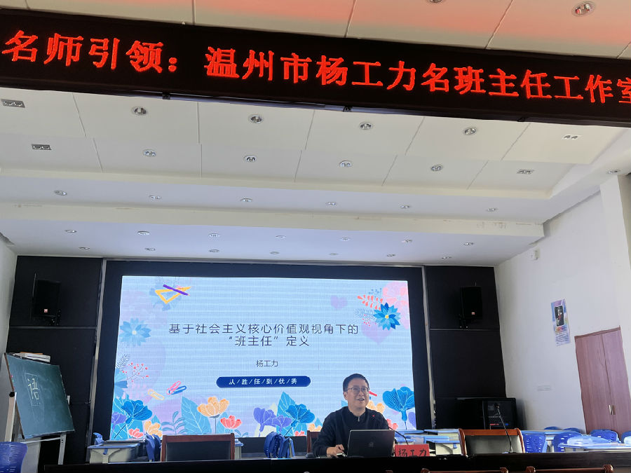 专题讲座环节,更是精彩不断。温州市骨干班主任、温州市教坛中坚曾跃慧老师的《青少年“法治”教育——常规之“规”,法治之“治”》讲座,深入剖析了法治教育在青少年成长中的重要性,以及如何在班级常规教育中融入法治元素。而温州市名班主任杨工力老师的《基于社会主义核心价值观视角下的“班主任”定义》讲座,则从更高的视角,重新审视了班主任的角色定位,强调了班主任在培育学生社会主义核心价值观中的关键作用。