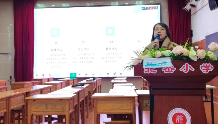 接着,来自温州市籀园小学的刘燕老师围绕《实现教学评一致性的习作支架设计》从课程标准出发,围绕如何开展以学生为主的学习活动并给予评价、再以评价反馈教学实现真正的“教学评”一贯化进行了深入浅出的讲解。刘老师以四年级上册的第三单元“写观察日记”这一习作内容为例,具体地展示了如何通过构建科学的习作框架,引导学生逐步掌握写作技巧,同时结合具体评价标准,帮助学生明确学习目标,提升学生的写作能力与写作质量,并在最终逐渐实现习作支架的撤除,引导学生独立写作。