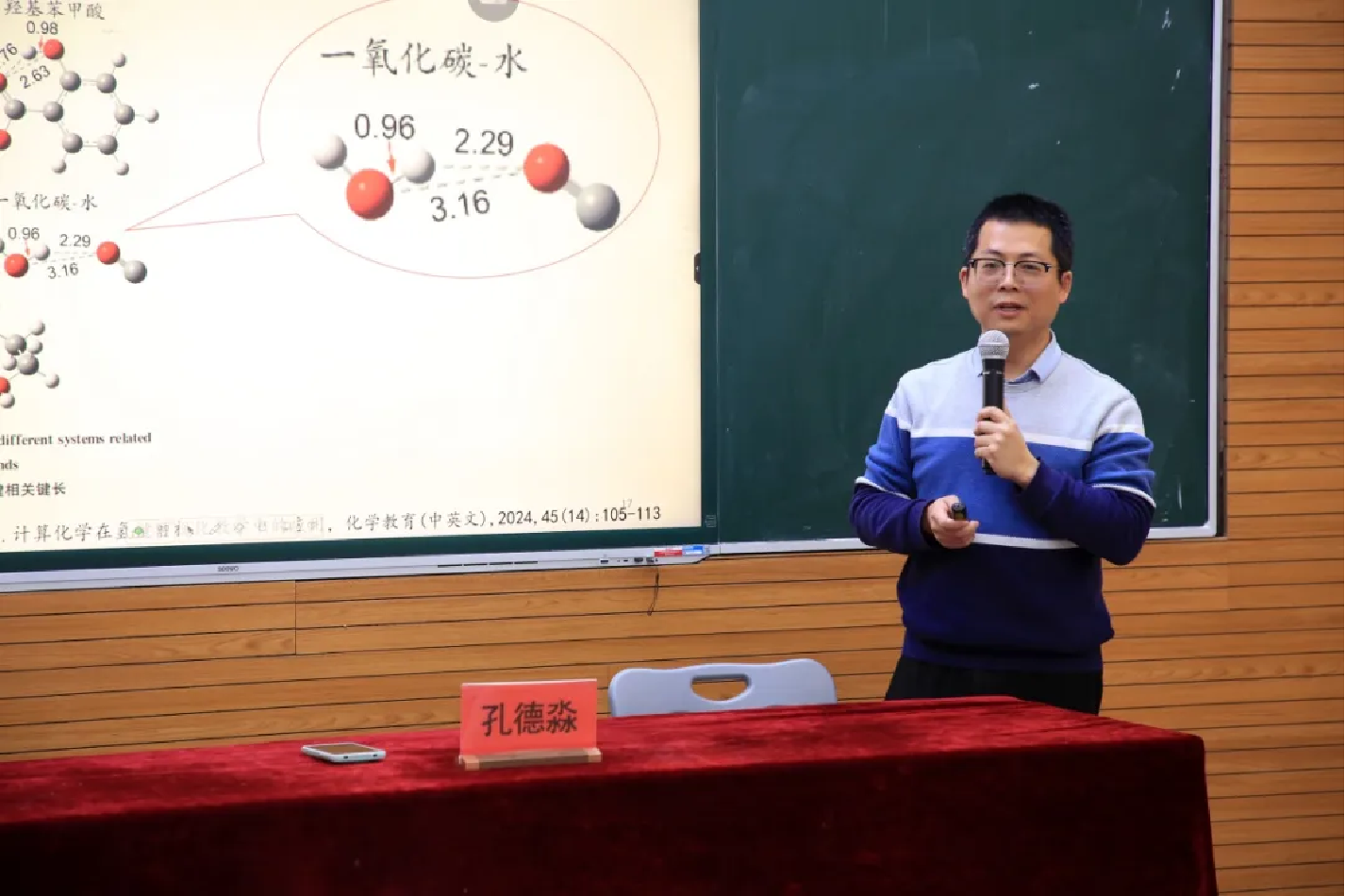 平阳中学正高级教师孔德淼老师作了《认识方式的转变与发展之教学的思考》的专题讲座。孔老师从自身教学实践出发,整理并解决了《物质结构与性质》教材的常见疑难问题。他指出身为化学教师,不仅要有教师的化学素养,更要有像专家一样的思考方式,教师的深度和广度决定了学生的深度理解。