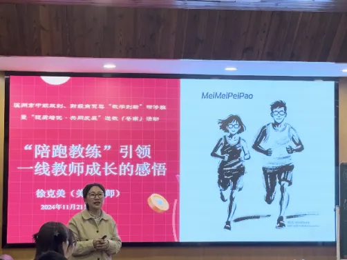 徐克美教授对公开课和说课展示进行了深入细致的点评。她肯定了教师们在教学创新方面的努力和成果,同时也指出了存在的问题和不足,在课堂上要注重学情的研判,从学生角度出发思考教学策略,为教师们提供了宝贵的改进建议。徐教授还带来了《“陪跑教练”引导一线教师的感悟》的专题讲座。她以“陪跑教练”的角色定位,阐述了教师在教学创新中的角色和使命。她认为,教师应该成为学生学习的引导者和陪伴者,通过“陪跑教练”的方式,激发学生的学习兴趣和动力,培养他们的创新思维和实践能力。讲座内容深入浅出、生动有趣,赢得了教师们阵阵掌声。