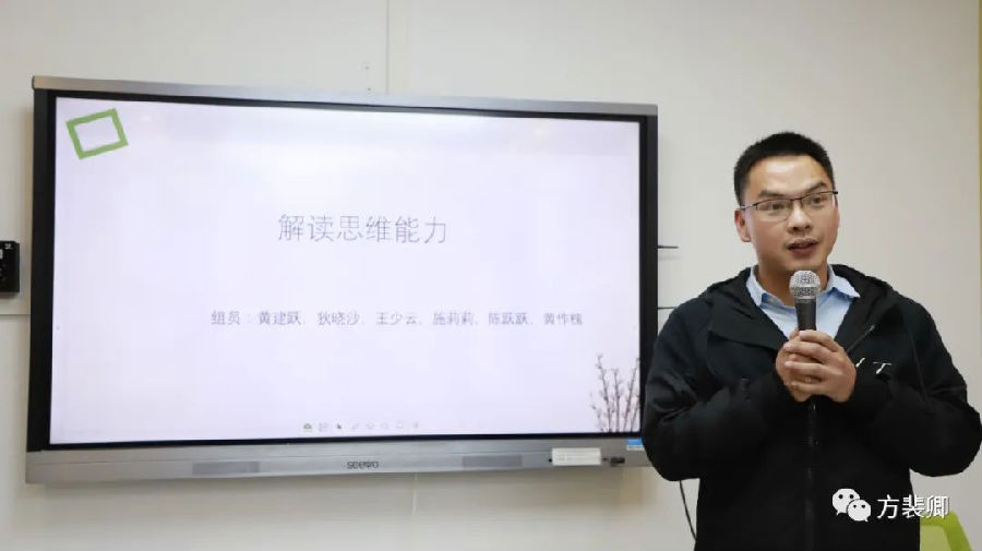 第三组:跨越学科来看思维能力来自温州市双屿小学的黄作槐老师代表第三小组,作了题为《跨越学科来看思维能力》的分享。该组从心理学的思维定义出发,联系语文新课程标准中总目标的解读,结合单元目标中有关思维训练点,了解学习任务群下的思辨性阅读与表达,最后,阐述了在生活中思维活动的呈现方式、思维过程及思维目的。发展思维能力,促进学生高阶思维能力的发展,帮助我们更加全面、深刻地认识思维能力这一素养目标。