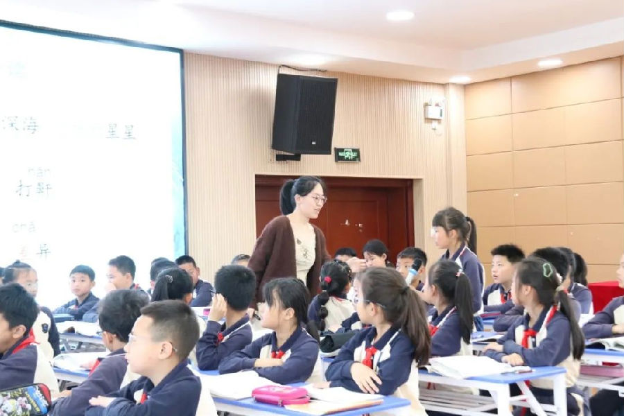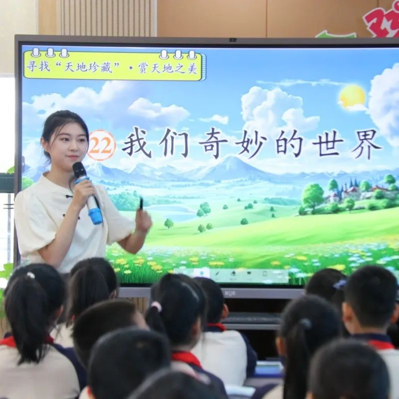 第一节课由余好老师和三(1)班的孩子为我们带来《我们奇妙的世界》。余老师以奇妙串起了整个教学:一段视频,引导学生初识这个充满奇妙的世界;一次梳理,引导学生找寻奇妙的珍藏;一次欣赏,引导学生打卡天空珍藏的奇妙瞬间;一次记录,引导学生捕捉身边的奇妙珍藏。学生在诵读、言说、品味、练写等语文实践中学法、得法、用法,发现世界的奇妙,感受想象的丰富,展现文字的生命活力。