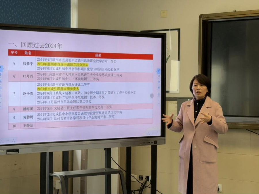 为更好的推进工作室课题实施,提高复习课质量,打造指向素养的问学课堂。2025年3月3日,潘素梅名师工作室第十一次研修活动在瓯海第二实验中学举行。活动共分为课题要点学习、课例研讨、专家引领和学员交流四个环节。