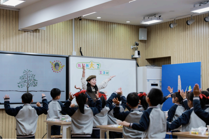 工作室成员、温州市第二实验小学的李莹老师在《生日树》一课中,运用播放植物成长视频、组织学生表演树叶及树的生长变化等方式,让学生沉浸式感受生命与自然的关联。课堂上的创意活动同样精彩,从“树枝手拉手”的材料拼摆,到引导学生回顾自身成长并利用废物装扮大树,全方位培养学生的创造力与环保意识。 经验分享环节同样干货满满。
