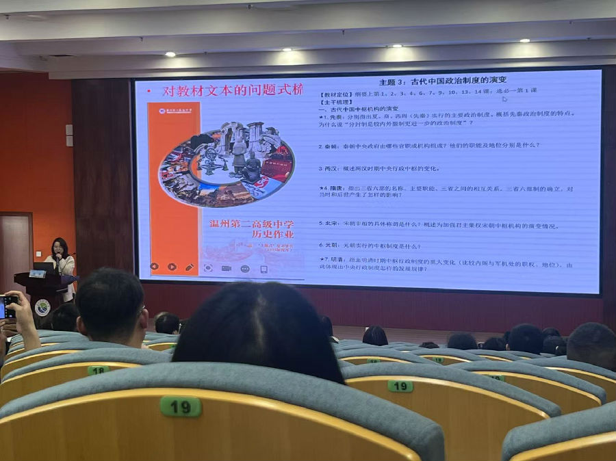 风起瓯越,潮涌东海。这场兼具理论高度与实践深度的研讨会,不仅构建了"素养导向·数据驱动·精准教学"的备考新范式,更点燃了全体教师勠力同心的奋斗激情。学员教师纷纷表示,将把研讨成果转化为"一生一策"的教学实践,以更科学的路径、更温暖的陪伴,助力学子在六月绽放历史思维的光芒。