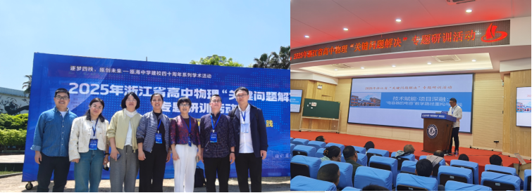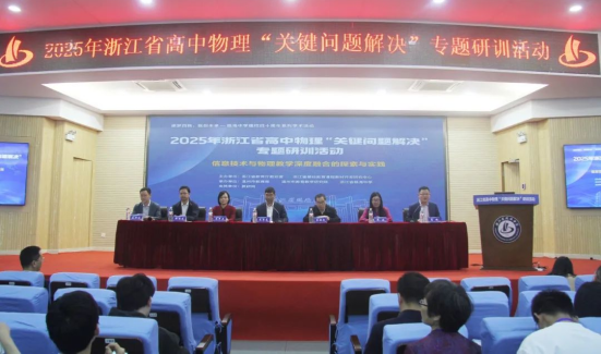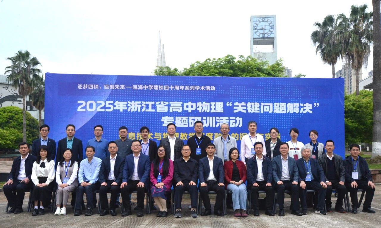 为进一步推动我省高中物理新课程实施,促进教师专业发展,交流教学改革成果,以“信息技术与物理教学深度融合的探究与实践”为主题的2025年浙江省高中物理“关键问题解决”专题研训活动,于4月10日至11日在浙江省瓯海中学举行。我们工作室部分成员参加现场学习,其余同步线上观看学习,工作室助理陈云富老师有幸做专题讲座。