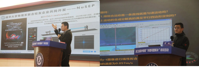 杭州学军中学 曾裕老师聚焦《视频分析软件在物理真实问题研究中的应用》,通过对Tracker 等视频分析软件的深度剖析,展示了其如何将复杂的物理现象以直观的视频形式呈现,并借助软件的分析功能,精准提取物体运动轨迹、速度变化等关键数据,为解决真实物理问题提供了全新视角,让学生能从生活实例中洞察物理规律,打破理论与实践之间的隔阂。