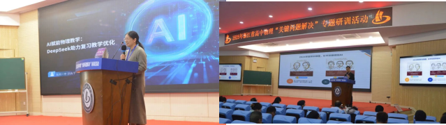 台州一中 洪海平老师做了《AI 赋能物理教学 : Deepseek 助力复习教学优化》专题发言,让AI 从“答题工具”升级为“教学伙伴”。Deepseek 不仅答疑,进行知识蒸馏,更能“把脉开方”,优化复习教学;不仅可以设计知识卡片,建立问题索引,设计解题蒸馏器模型,而且构建母题变式库,实施微专题库等,定制个性化的成长路径,满足学生个性化的学习需求。
