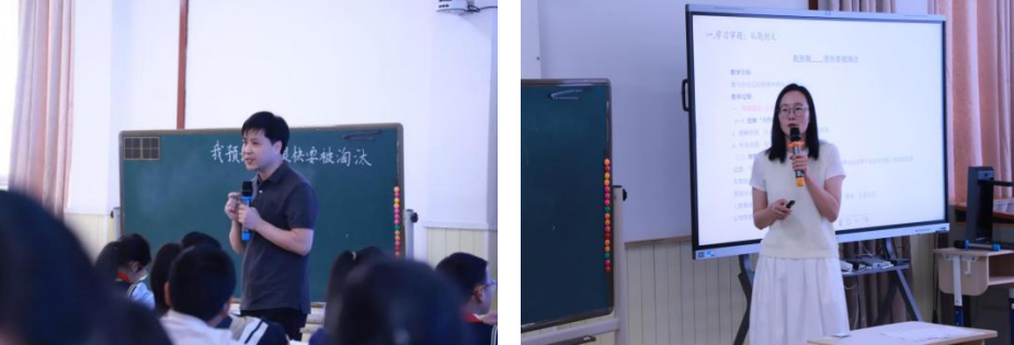 张志萍老师引导学生发现不同类型的事物被淘汰,引发思考,打开话题。季显莹老师以《让宽写作常“新”》为主题展开说课,深入解析了该课的教学理念与方法。