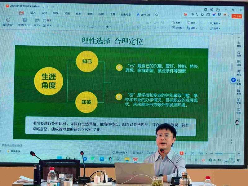 高考志愿填报是实现“弯道超车”的关键环节。浙师大招生办吕一凡主任带来了《高考志愿填报经验分享》的实用讲座。吕主任首先介绍了浙师大的深厚文化底蕴、卓越学术实力及广阔发展前景。随后,他细致解答了报考中的基本问题,深度剖析了录取规则,为与会者绘制了清晰的报考路径图。讲座还涵盖了浙师大国际化视野和全方位学生保障体系,描绘了精彩的师大生活图景。最后,吕主任分享了实用的志愿填报方法,助力考生和家长规避弯路,高效决策。生科院副书记朱慧老师随后进行了激情昂扬的补充发言,使大家对相关情况有了更清晰的认识。