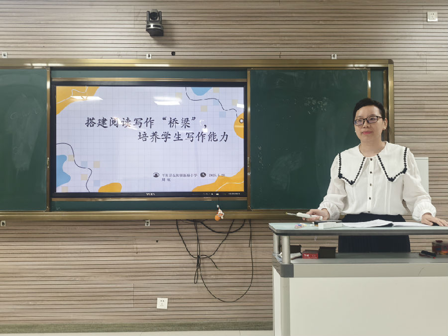 紧接着,平阳县昆阳镇新城小学周虹老师以《搭建阅读写作“桥梁”,培养学生写作能力》为题,结合PEP教材读写板块特点以及教学实践经验,深入剖析阅读与写作的关联及培养策略,干货满满,为教师们在读写教学方面提供了切实可行的指导。