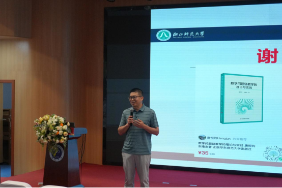第二议程,浙江师范大学教授、博导唐恒钧老师带来了一场专业且深入的专家讲座《从教学案例到教学论文的转型》。首先,唐教授通过对期刊发表的编审流程进行解析,阐明了期刊的专业性和严谨性。而后唐教授以读者、专家两个视角深刻分析了论文选题的方向,并分享了不同类型论文选题的研究框架,其中多次强调研究目标的唯一性,手段变量的多样性。接着,教授凭借深厚的学术功底和丰富的教学经验,深入浅出地讲解了如何将日常教学案例转化为高质量教学论文,提出了可行的教学案例到教学论文转化路径,聚亮点,联亮点,析亮点。经纬,编织学术表达的“锦绣文章”。最后,唐教授结合具体论文深度剖析教学论文的结构搭建,并对论文中各个要素的评价机制进行细致的讲解,强调数学论文少诗意,多简洁。这场有关论文写作的讲座干货满满,令现场在座老师受益匪浅。