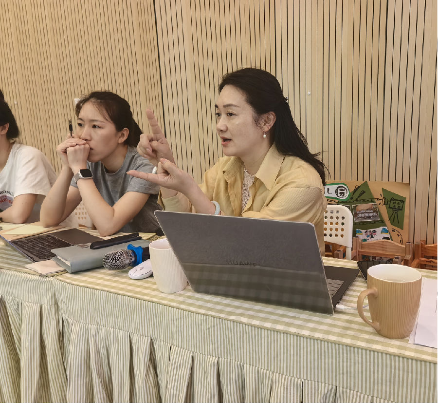 最后,工作室领衔人刘双双老师对上午的活动进行了精炼深刻的总结。她的发言高屋建瓴,从儿童立场的坚守到课程内容的生成,从游戏精神的内化到审议机制的完善,点明了活动的核心价值,并对下一阶段的实践方向提出了殷切期望,犹如一盏明灯,为老师们的实践探索指明了清晰路径。