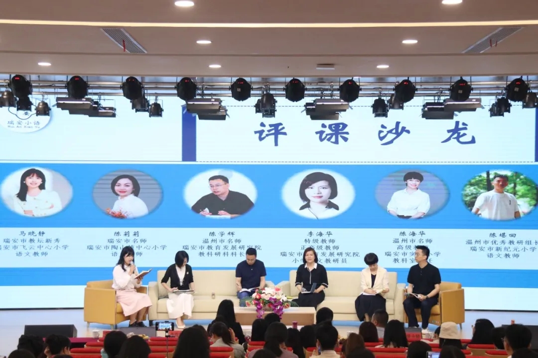 评课沙龙环节由李海华老师主持,陈学辉老师、陈海华老师、陈莉莉老师、陈堪回老师和马晓静老师组成评课团。特级教师李海华评价苏老师低段游戏化教学夯实语言根基,朱老师中段任务群教学锻造价值认同,黄老师高段跨学科读写拓展素养疆域,共同应答核心素养培育的时代命题。其领衔的专家团队从课堂教学观察、学习效能评估等维度展开深度研讨,点赞课中立足学生语文素养形成的教学亮点,也提出了自己的真知灼见。