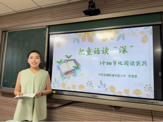 紧随其后的整本书阅读经验分享环节,将活动推向又一个高潮。黄冷双、付雪娟、叶园园、徐丽芝、李智慧五位学员依次登台,分享了她们在各自班级与学校推进整本书阅读的多元实践。从“阅读漂流”“小组情景剧表演”到“项目化学习”“三式阅读策略”,丰富多样的实践形态背后,是教师们对激发学生阅读兴趣、传授阅读策略、引领人文价值的共同追求。李娜老师在点评中指出,这些扎实的实践表明,工作室成员已不仅是课程改革的接收者,更是亲历的实践者和积极的影响者。她特别肯定了分享中体现出的“提炼意识”,鼓励大家从“叙事层”的“做了什么”,向“策略层”的“为何这样做、效果如何、反思是什么”升华,形成更具迁移和推广价值的教学智慧。