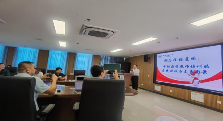 杭州师范大学王胜平主任作《溯历程·绘蓝图:中职数学教师继续学习的实践回顾与未来图景》专题讲座。他系统回顾了省内中职数学教师专业发展的政策脉络与培训实践,结合当前教育变革趋势,指出教师应在知识结构、能力素养等方面持续更新,树立终身学习理念,实现个人成长与教育发展的同频共振。
