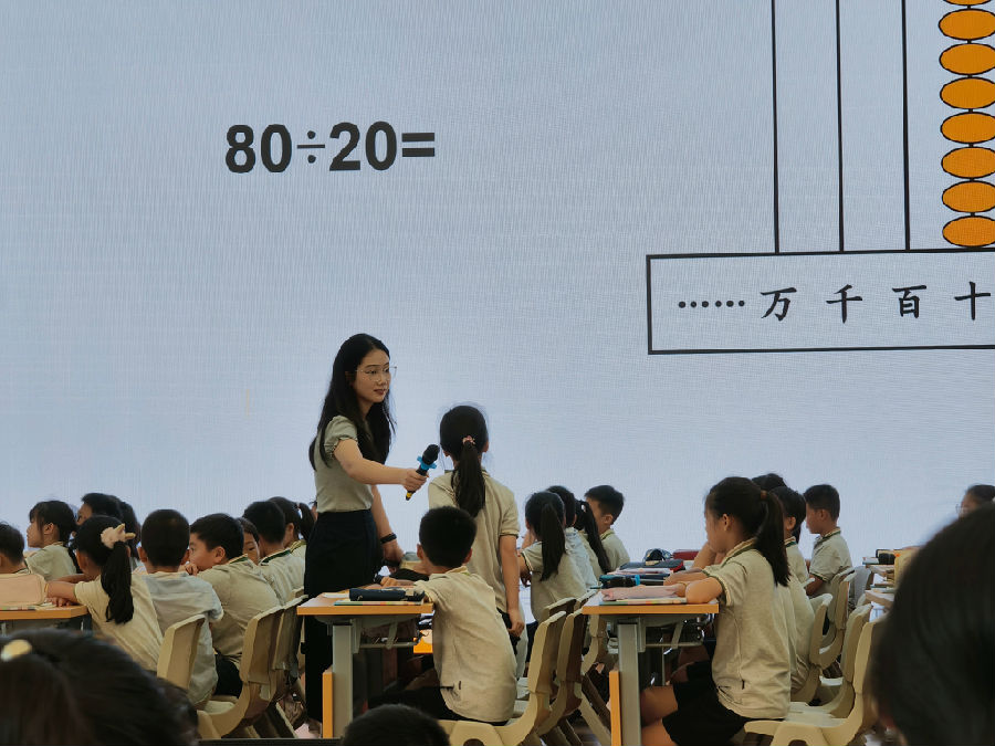 接着是温州市广场路小学的吴晓初老师执教四年级《口算除法》, 吴老师摒弃了传统的机械训练,将算理置于具体问题情境中,鼓励学生多元表征、算法多样化,并引导他们对不同方法进行比较与优化。“为什么可以这样算?”“哪种方法更通用?”等一系列问题,促使学生在理解算理的基础上进行批判性选择,并梳理加减乘除四则运算背后的一致性道理,展现了计算教学中思维训练的深度。