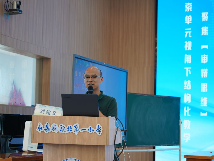永嘉县瓯北第二小学刘建义老师带来《基于学习路径分析的单元整体教学》的专题讲座。刘老师从理论层面剖析了学习路径分析的重要性,并结合具体的课例,详细阐述了如何基于学生的认知起点设计连贯、递进的学习任务群,从而将零散的知识点串联成线、编织成网,实现真正的单元整体建构。