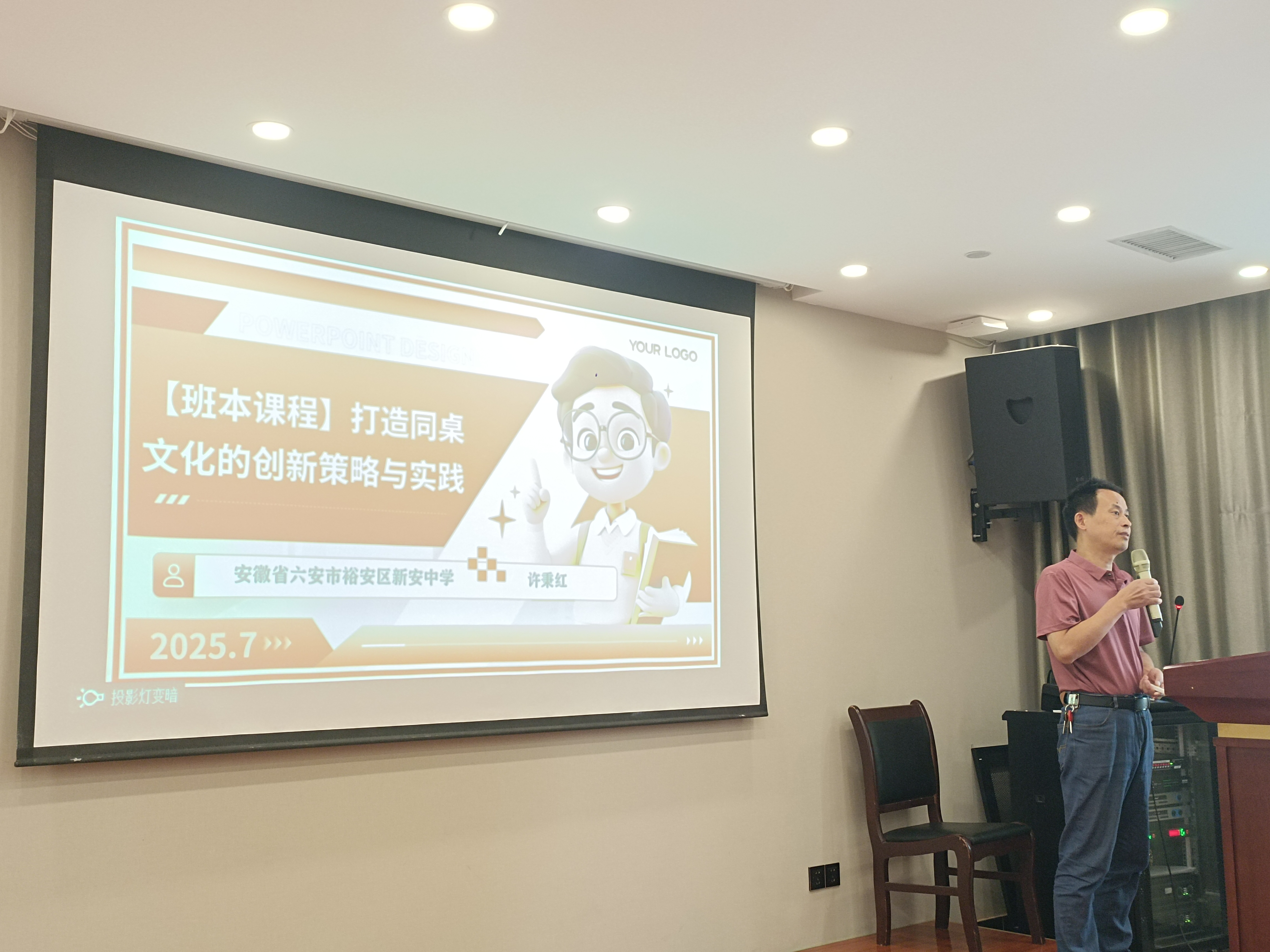 刘强老师以“班级特色文化构建”为主题,强调班主任应通过提炼关键词、固化班级框架、设计定制化活动,用心构建有温度的班级文化。他分享了一系列实践案例,如家访、共读、班徽设计、排球赛、包场看电影等,让学生真正感受到归属与幸福。