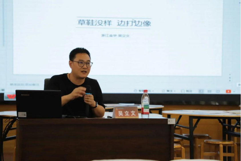 来自浙江省特级教师、金华市美术教研员吴立文老师带来了题为《中小学美术新教材与教师实践智慧》的精彩讲座。吴老师开宗明义,指出美术课堂绝非静态技法与知识的简单传递,而应是一个动态、充满思辨的思维建构过程。他强调,成功的艺术课既要有趣,更要有思辨深度——其核心在于引导学生思考“为什么这样画”、“还可以怎样表达”,而非仅仅教授“画什么”。