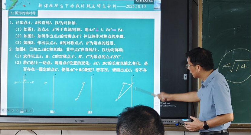 工作室荣幸地邀请到永嘉县教师发展中心教研员胡明雷老师作专题报告。胡明雷老师以《新课标理念下的教材疑点堵点分析》为题,讲解了在教育教学过程中遇到的疑点。“有疑处”释疑,疏通教学堵点。 针对教师们普遍反映的教学疑难点,如“认识方程中尝试检验法的应用”、“整式的乘法教学中的联系实际图形”、“图形的对称轴”等,胡明雷老师抽丝剥茧,不仅提供了清晰的教学路径,更分享了如何引导学生构建知识网络,将零散的知识点串联成线、编织成网,实现知识的融会贯通。