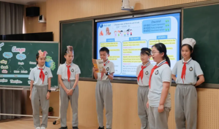 乐清市英华学校的朱建静老师与六(6)班的孩子们共同演绎了PEP 8 Unit 4 C Story time,朱老师巧借文本插图,引导学生按照“变化”主题及时间先后顺序,纵向观察,整理出“Before → Now → Future”三条时间线索,并利用故事中原有的评论引发学生对这些“变化”的思考。朱老师以项目化驱动性问题“What are the changes? Why do they change? How to make the changes better?”落实故事内容,促进学生思维能力的提升。