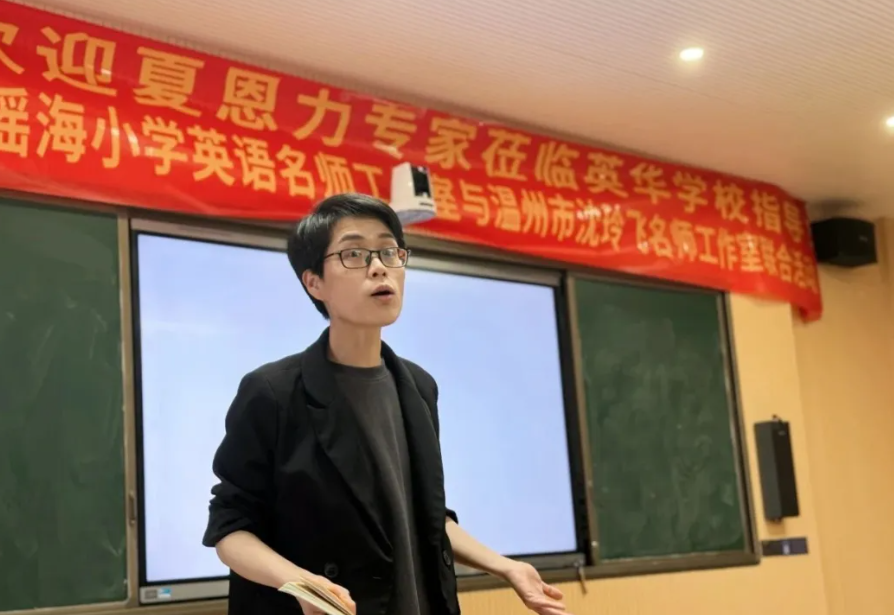 在这人间最美四月天的季节里,为充分发挥名师的引领作用,促进教师专业能力的提升,4月29日温州市倪瑶海小学英语名师工作室与温州市沈玲飞名师工作室联合活动在乐清市英华学校举行。参与活动的有浙江省教坛新秀夏恩力专家,温州市倪瑶海名师,温州市沈玲飞名师,及各名师工作室的所有成员。本次活动主题为“新课标背景下的英语学习活动设计及项目化学习的实践”,活动由乐清市英华学校朱媛媛老师主持。