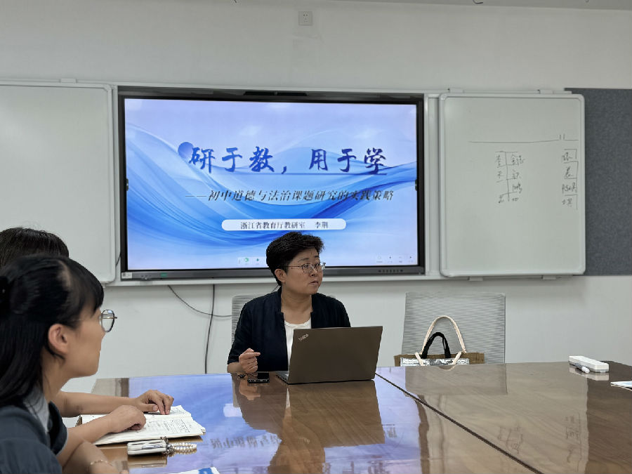浙江省教育厅教研室李荆老师带来专题讲座,围绕 初中道德与法治课题研究的实践策略展开分享。她结合自身丰富经验,提出课题研究要抓 小切口、真问题,研究过程需 理实结合、步步扎实,成果提炼要 聚焦素养、突出创新。通过鲜活案例的剖析,李老师将抽象的研究方法转化为可操作的实践路径,让学员们对课题研究的全流程有了更清晰的认知。