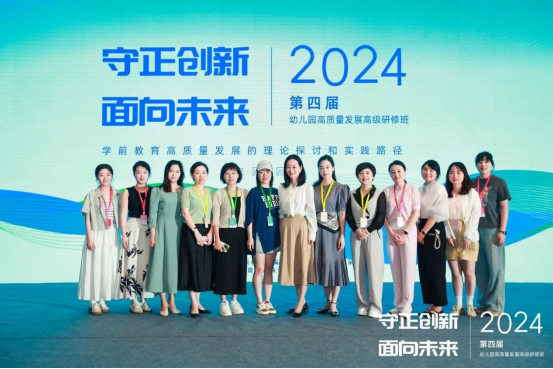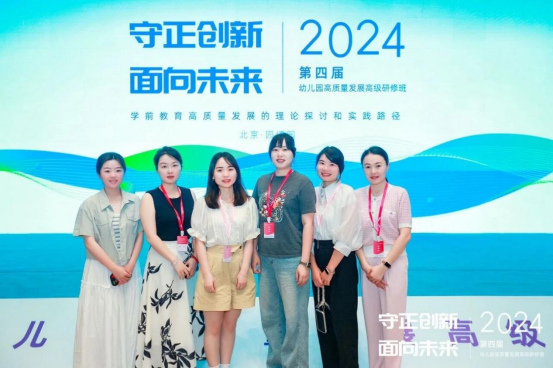2024年6月,陈苗学前教育名师工作室与凌素凡学前教育名师工作室开展联合研修活动,远赴北京参加“守正创新 面向未来——第四届幼儿园高质量发展高级研修班”。本次学习围绕提升学前教育质量的核心议题,通过主题演讲、专题研讨和名园参观等形式,深入探讨在新时代背景下如何进一步推进学前教育的高质量发展。主持人陈苗在本次研讨会上做了“未来乡村园”实践成果的经验分享。