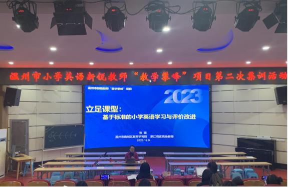 128日下午,温州市鹿城区教育研究院,浙江省正高级教师,张璐老师带来了《立足课型:基于标准的小学英语学习与评价改进》的专题讲座。张老师从五个角度阐述了素养导向下的教学。在制定教学目标时,通过育人课堂,达成素养目标;在处理教与学关系时,评价伴随学习,设计真实任务;在组织学习方式时,开展实践型课堂,深度学习;在处理教学内容时,立足单元主题,实现知识统整;同时关注学科育人,在真实情境中解决问题。结合以上的三节课堂实例,关注阅写课、语音课及词汇课的关键问题,为在座的教师细致梳理,指明方向。