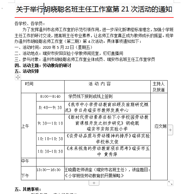 > 关于举行胡晓聪名班主任工作室第21次活动的通知