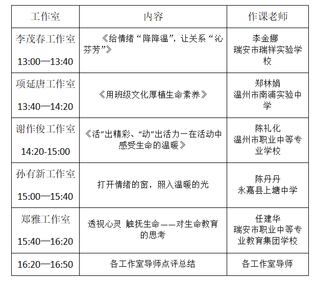 > 关于举行温州市谢作俊(第四期)名班主任工作室第6次活动的通知