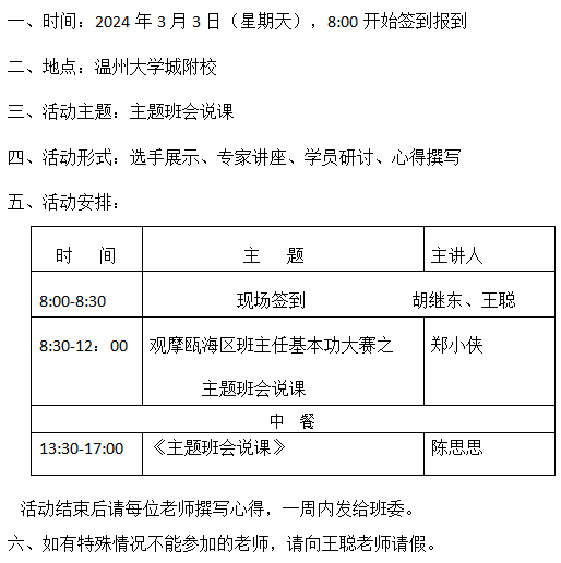 温州市 郑小侠 名班主任工作室于 2024年03月03日 08:00:00时到2024年03月03日 17:00:00时