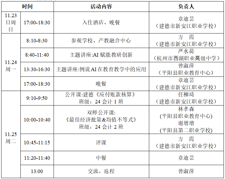 为充分发挥特级教师工作室的引领辐射作用,深化区域间校际合作与教育教学经验交流,聚焦AI技术与课堂教学的深度融合,切实促进教师在智能教育领域的专业能力成长,持续提升课堂教学质量,并积极推动教育教学模式的创新与发展,经研究决定,特组织杭州市乡村工作室(严水荷新安江工作室)与温州市工作室(曾淑萍平阳名师工作室)联合教学研讨活动,开展以“AI赋能教学实践”为主题的专题学习交流活动,重点学习该校在AI教学应用、智能教学场景搭建等方面的先进经验。
