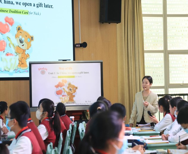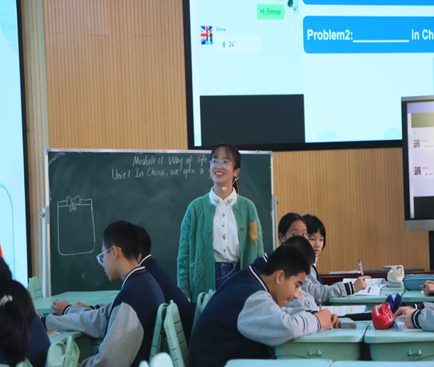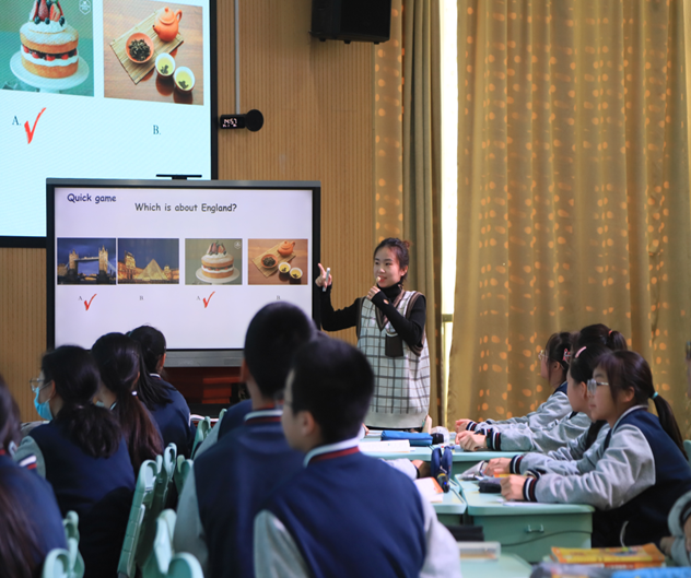 次日,金怡雯、汪晓聪、谢淑超和刘敏四位教师以“NSE 8A M11 Way of life Unit1 In China, we open a gift later”为课题,进行了同课异构。下午,叶彤和傅挺挺两位老师以“NSE 8A M11 Way of life Unit2 In England, you usually drink tea with milk”为课题,进行了同课异构。六位教师精彩纷呈的教学展示将学员教师们带入一场体验感十足的初中英语学科项目化实践之旅。