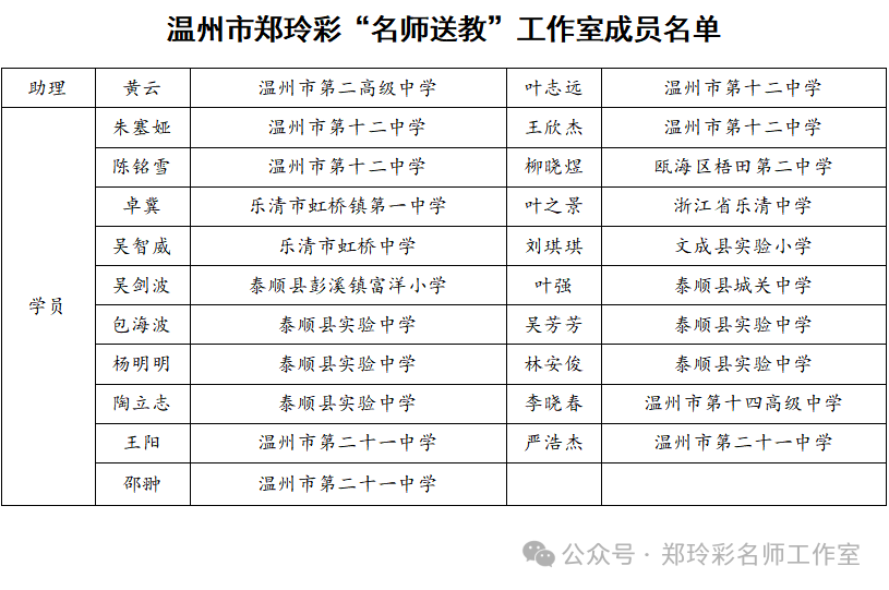 温州市郑玲彩“名师送教“工作室全体学员