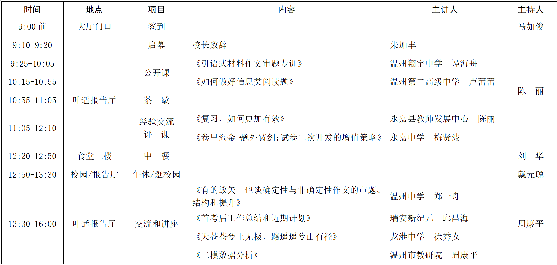 地点:温州翔宇中学叶适报告厅门口