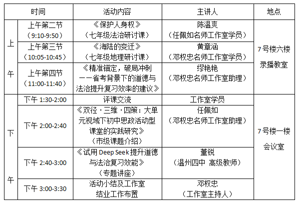 各有关学校,为提升教科研能力和智能技术对教学的运用,温州市邓权忠“名师送教”工作室决定开展第十四次研修活动,以促进广大学员学习新理论、利用新技术、研究新课堂。