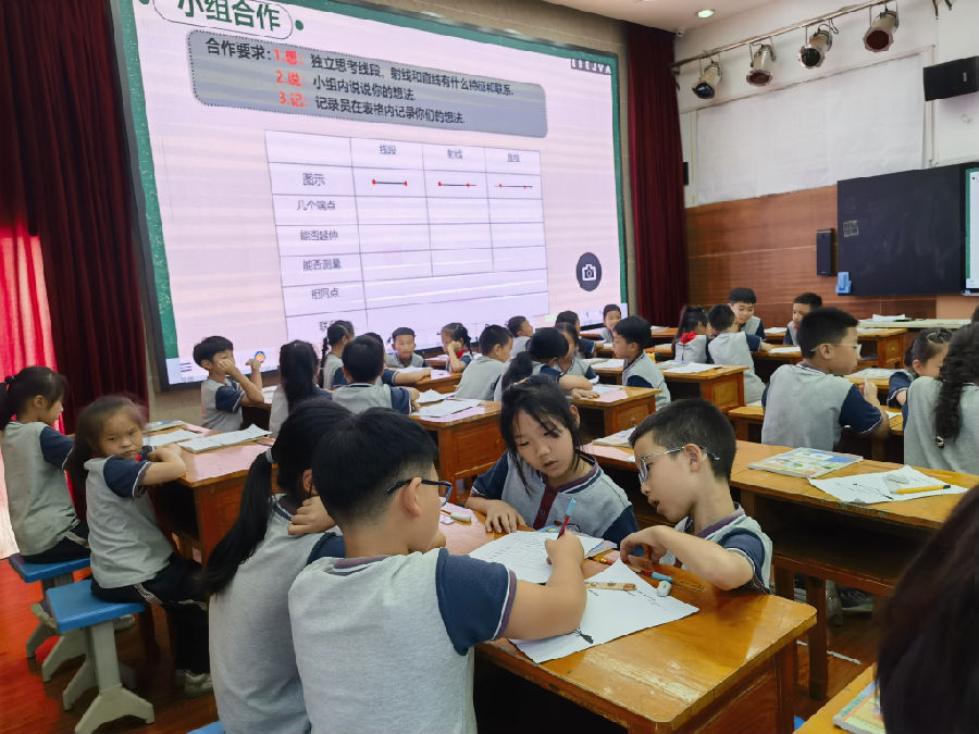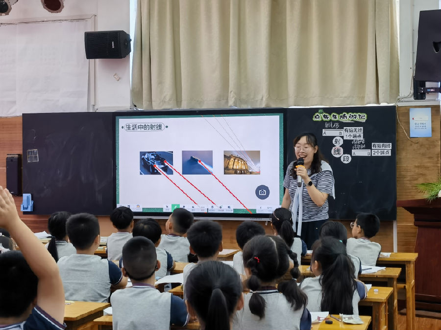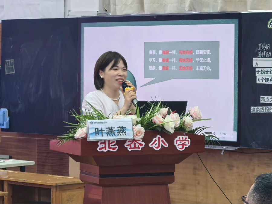 活动伊始,胡常常老师带来四年级数学研讨课《线段、射线、直线》。课堂上,胡老师以生动有趣的情境设计激活氛围,精准捕捉学生认知难点,通过直观演示让抽象概念具象化、空间想象引导让思维维度更立体、符号化表述训练让数学表达更规范,三个层次层层递进,多维培养学生空间观念,充分展现了以学生为中心的教学理念,为在场教师提供了可借鉴的教学实践范例。