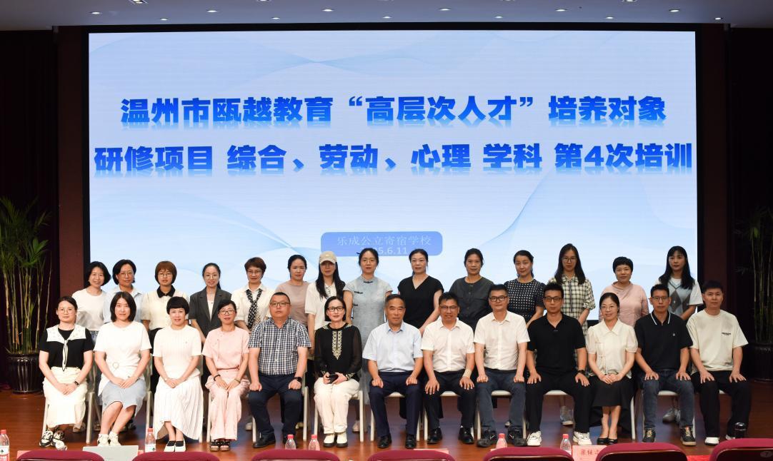 2025 年6 月 11 日,温州市瓯越教育 “高层次人才 ”培养对象研修项目   综  合、劳动、心理 学科第 4 次培训活动在乐清市乐成公立寄宿学校顺利举行 。为  深入推进综合实践活动课程改革,探索家校社协同育人模式创新路径,提升工作 室成员教学实践与研究能力,本次活动特邀郑巍巍、潘春波等教育专家及名师团 队,通过专题讲座、课例研讨等形式,聚焦综合实践活动的协同实施与育人价值, 为参会教师搭建了高层次的学习交流平台。 乐清市及周边地区综合实践劳动教  师、 心理健康骨干教师及教育工作者齐聚一堂,共探教育创新路径。